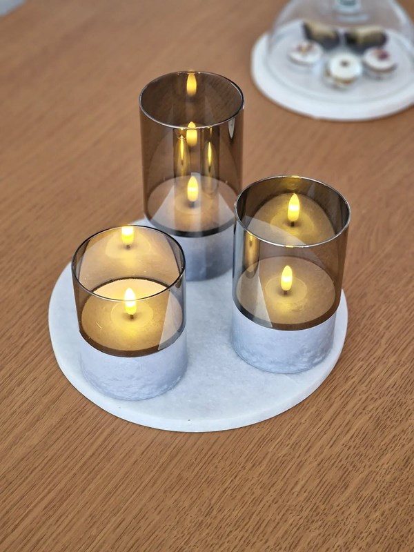 Lucide VELAS - Tischlampe - Batterien - Ø 8 cm - LED - 3x0,2W 2700K - Rauchfarbe Grau - Set von 3