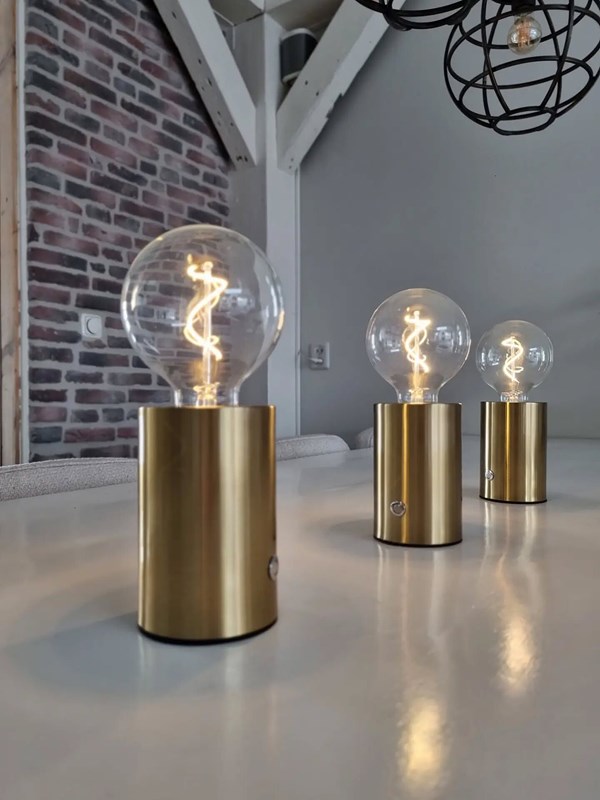 Lucide VIVO - Rechargeable Table lamp - Battery pack - Ø 8 cm - LED Dim. - E27 - 1x1W 2700K - Matt Gold / Brass