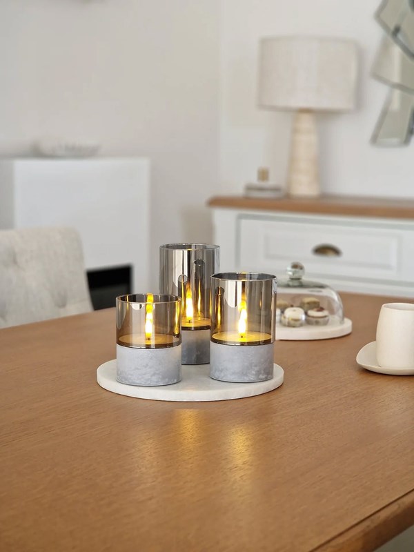 Lucide VELAS - Lámpara de mesa - Batería/pilas - Ø 8 cm - LED - 3x0,2W 2700K - Ahumado - Set de 3